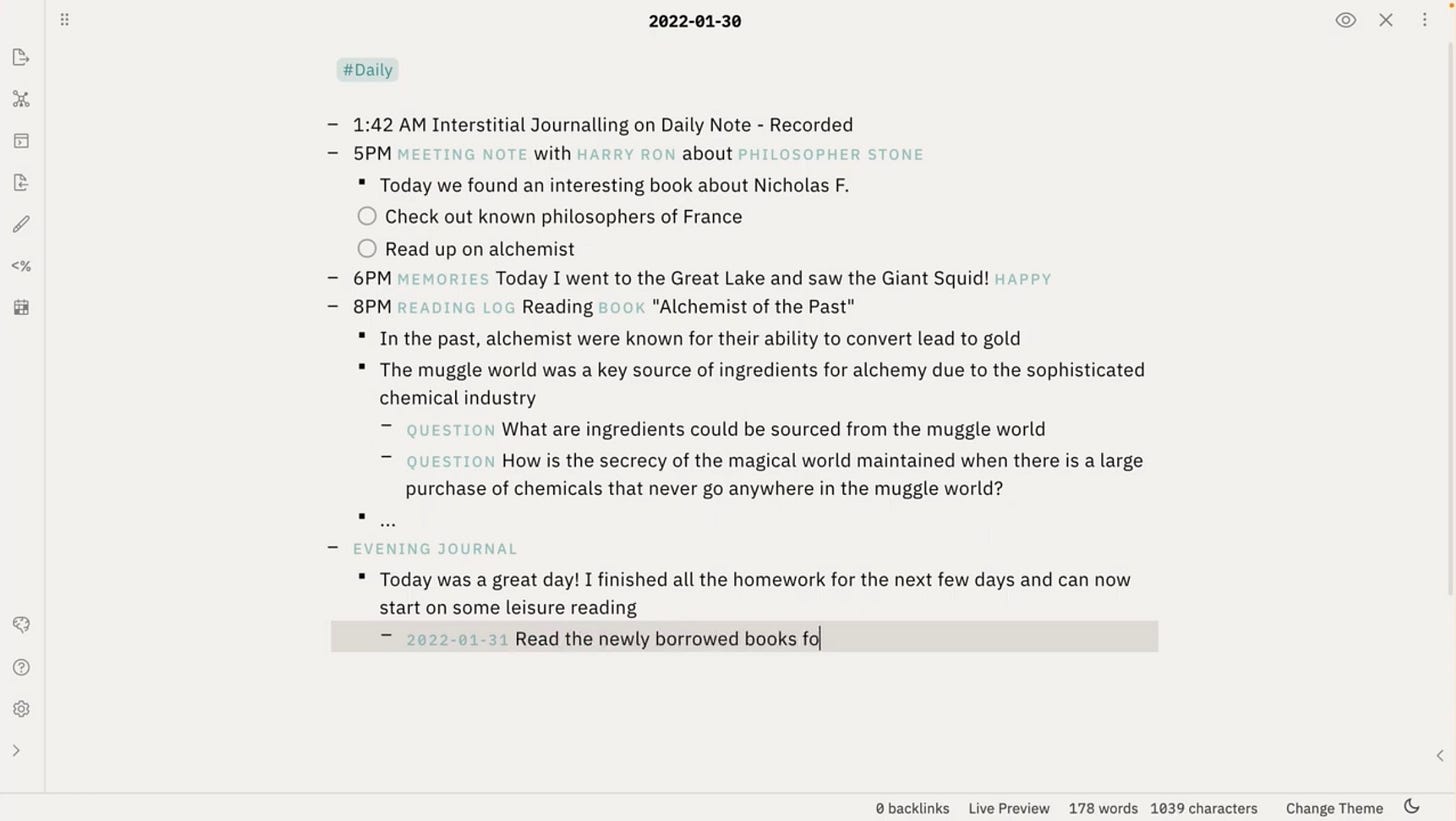 I don’t really get a lot of intellectual discussion here. So I integrate in AI research for ideas that I don't know a lot about. I do just set aside a section for interesting notes by AI in my zettel. I know a lot of people are feeling very outraged about the use of AI in all writing, But I think for personal use, you shouldn't feel the need to rewrite everything in your own words.