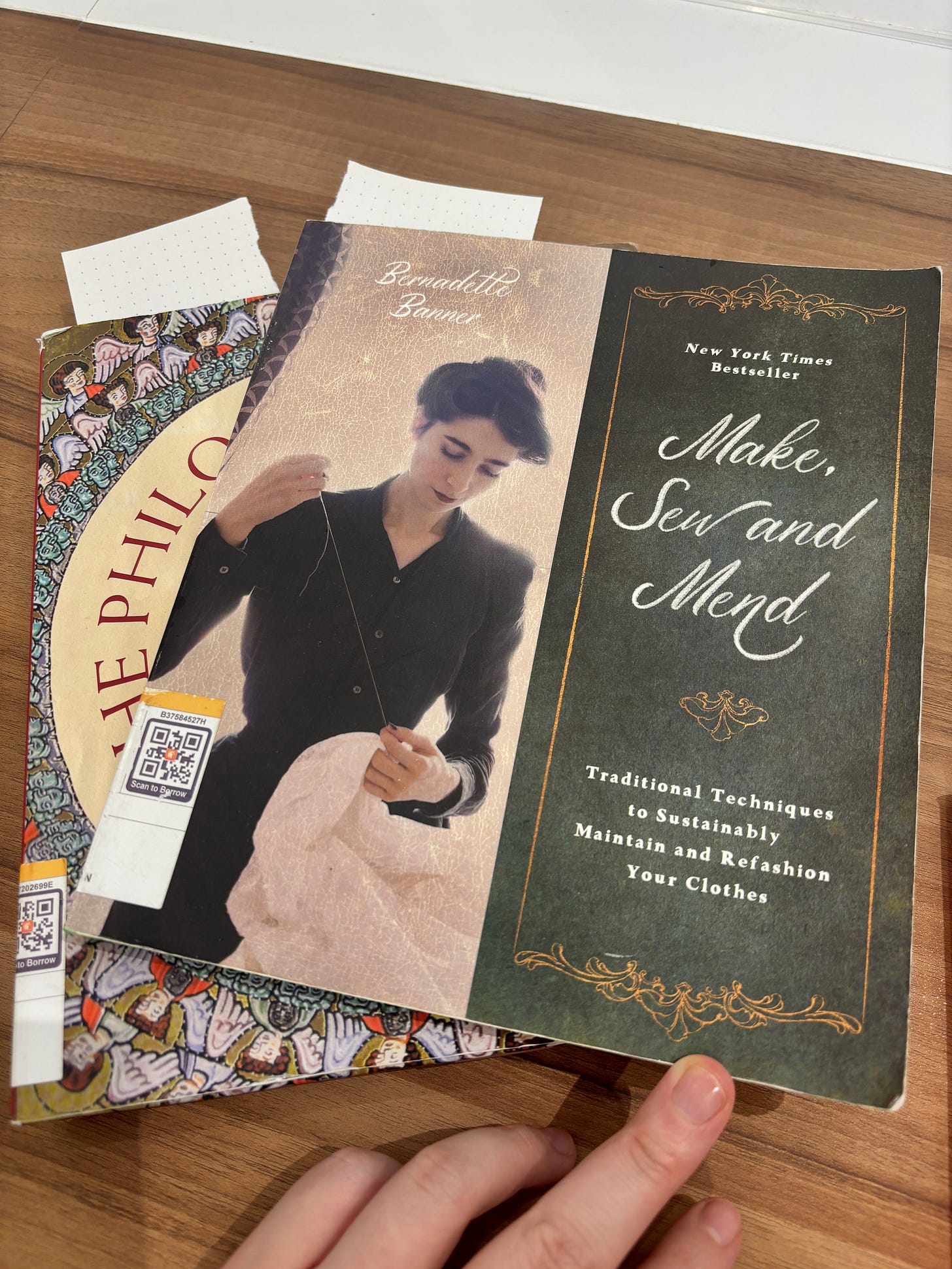 Reading these two books today really was not about the knowledge that was in the books. I didn't actually get that far in the philosophy of history. Book, and this sewing book is more about sewing techniques and the absolute basics of hand sewing. When I actually want to learn about how to do chaotic sewing (more intuition-based) instead of working with patterns and with a focus on altering existing pieces of clothing so I can make them suit me (my curvier body) instead of trying to make a piece of clothing entirely from a pattern or start with what kind of fabric I want to use. This book is a bit too advanced for me and also a bit too basic at the same time.
